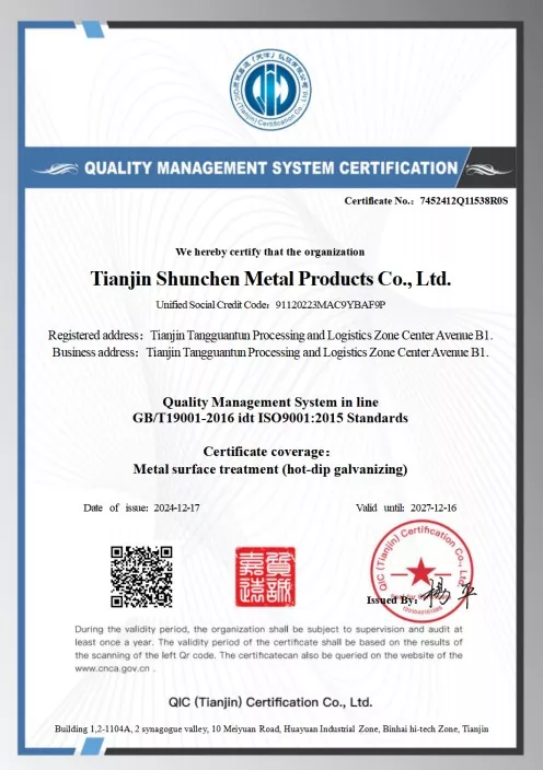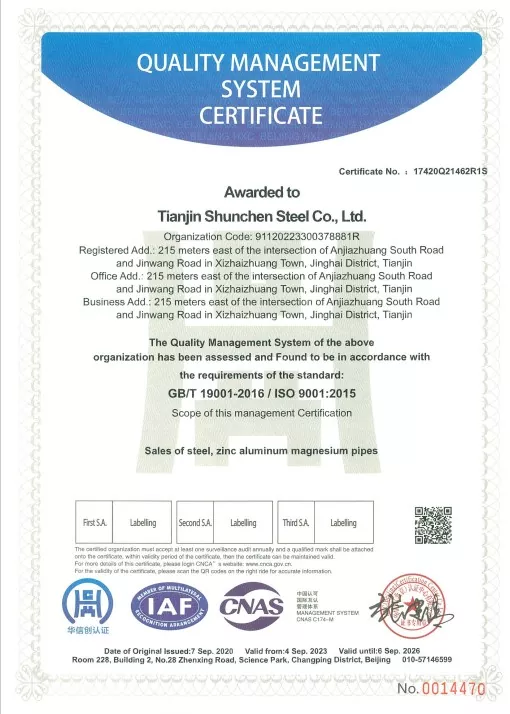 मानकहरू: GB/T 3091-2015 "कम-प्रेसर फ्लुइड ढुवानीका लागि वेल्डेड स्टील पाइपहरू", GB/T 13912-2020 "हट-डिप ग्याल्भेनाइज्ड स्टिल ट्यूबहरू"। उत्पादन तेस्रो-पक्ष परीक्षण पास भएको छ र एक परीक्षण रिपोर्ट छ।